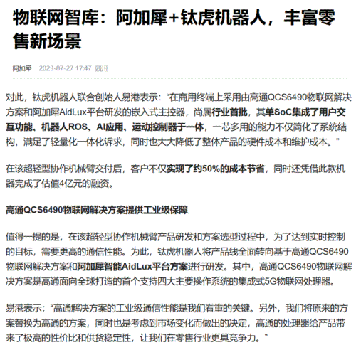 钛虎机器人成立于2020年8月,是一家提供机器人高端硬件与机器人整体解决方案的高科技公司,致力于打造适配广泛的高性能行业标准品,致力于降低客户开发和使用机器人的门槛,重构机器人和工业自动化产业链格局。